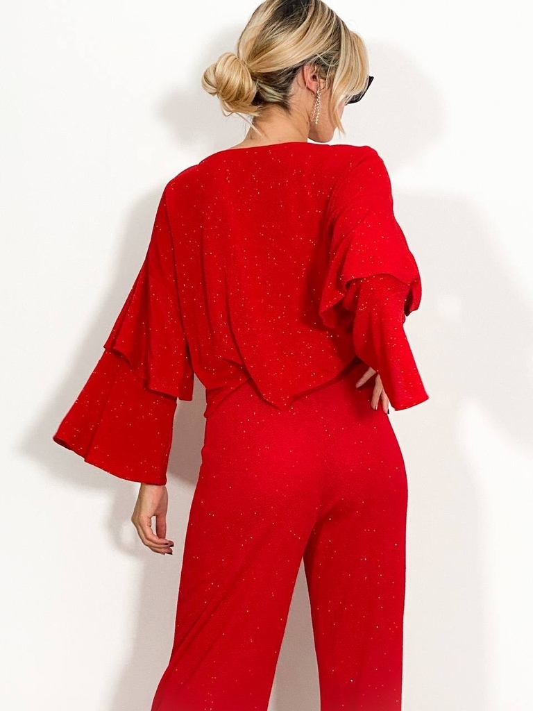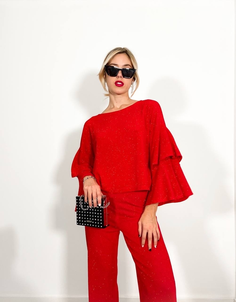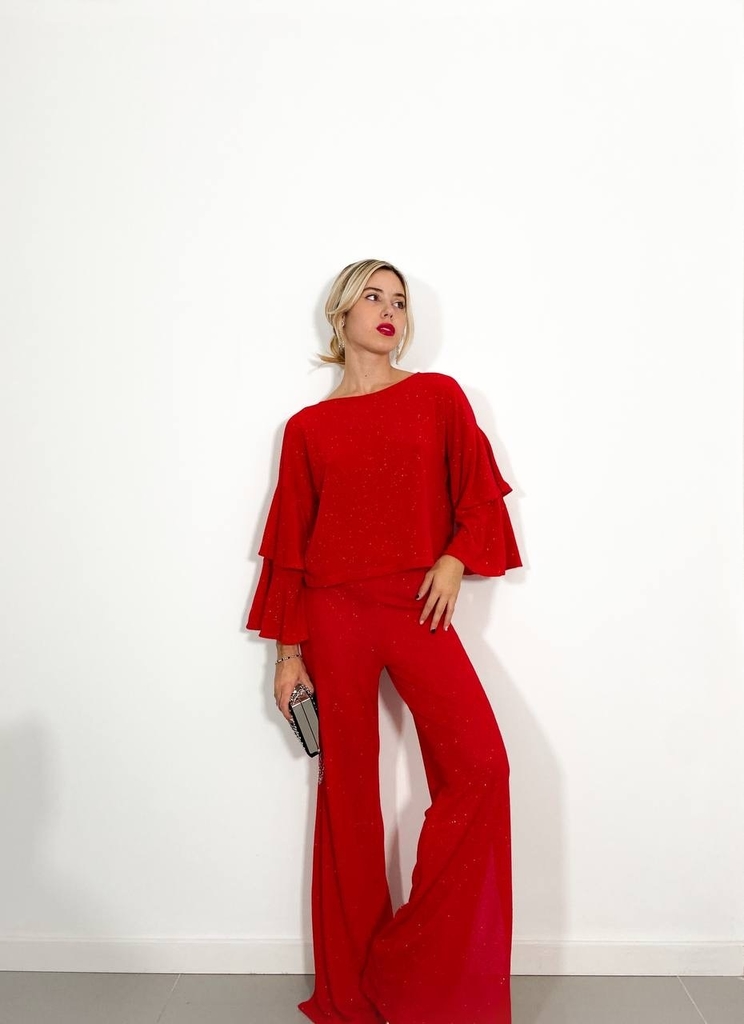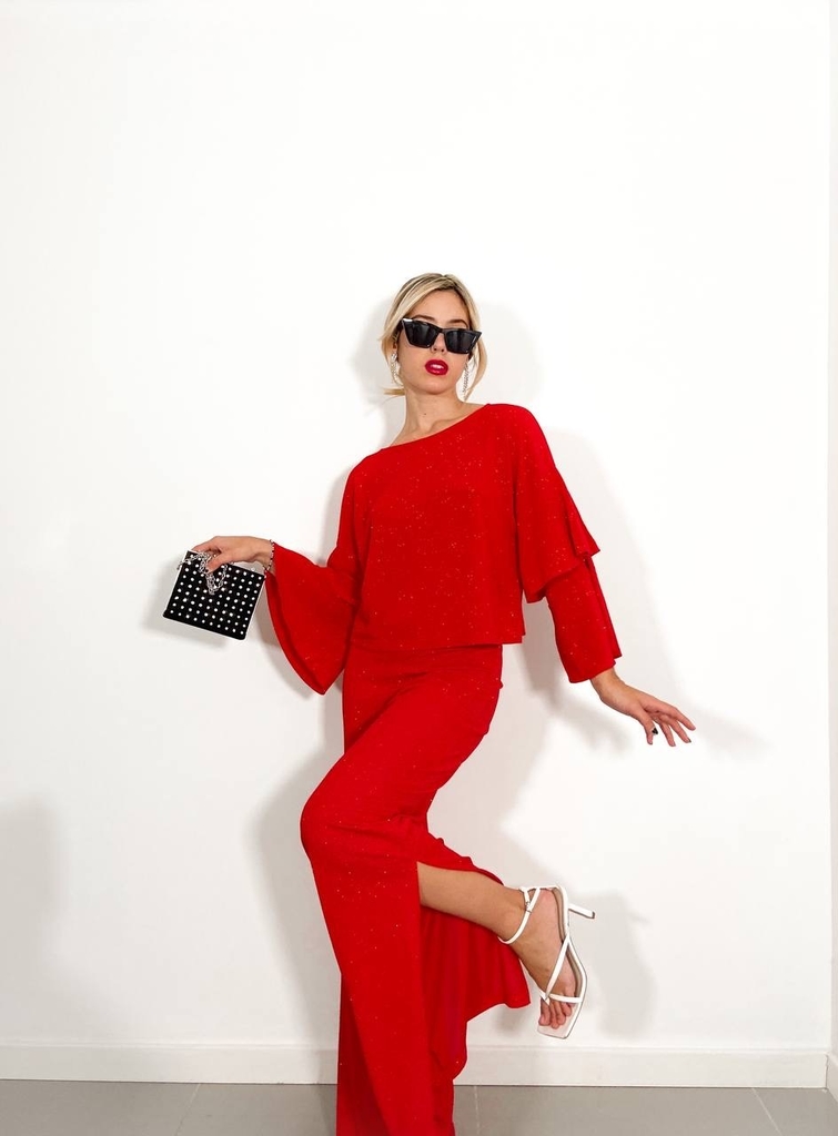 𝐃𝐄𝐓𝐀𝐋𝐋𝐄𝐒 𝐃𝐄 𝐋𝐀 𝐏𝐑𝐄𝐍𝐃𝐀: Sweater cropped de Lurex con mangas amplias
