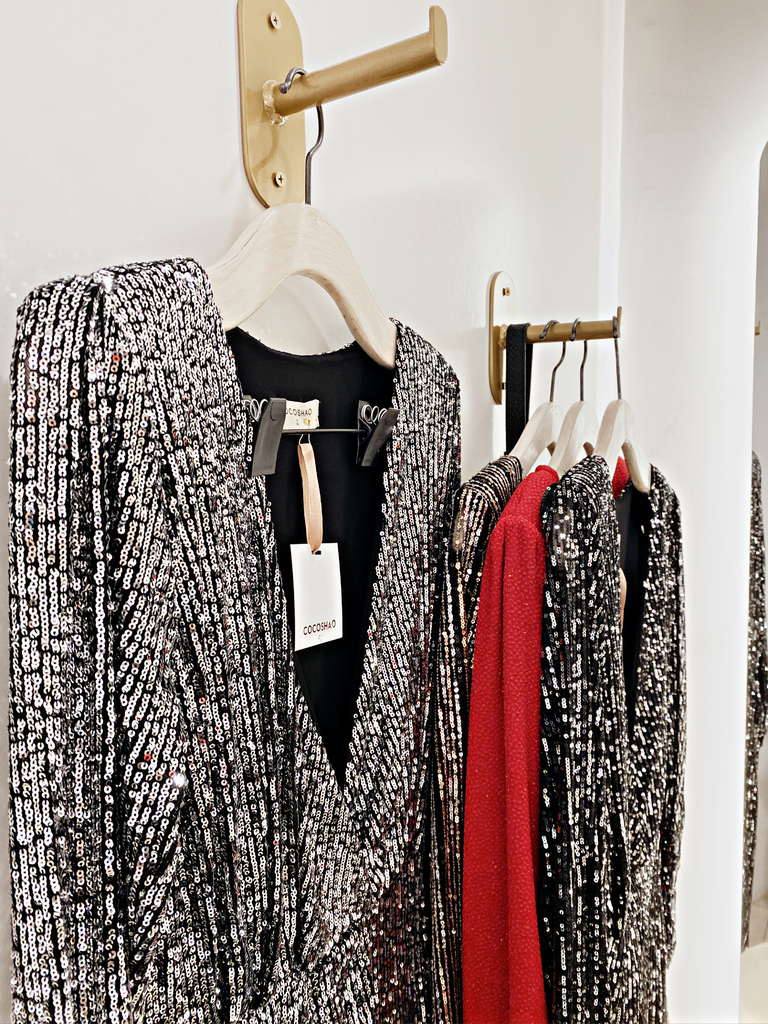 𝐃𝐄𝐓𝐀𝐋𝐋𝐄𝐒 𝐃𝐄 𝐋𝐀 𝐏𝐑𝐄𝐍𝐃𝐀: Vestido Midi de lentejuelas completamente forrado con cierre de 35cm lateral y hombreras. Tajo frontal y escote pronunciado.