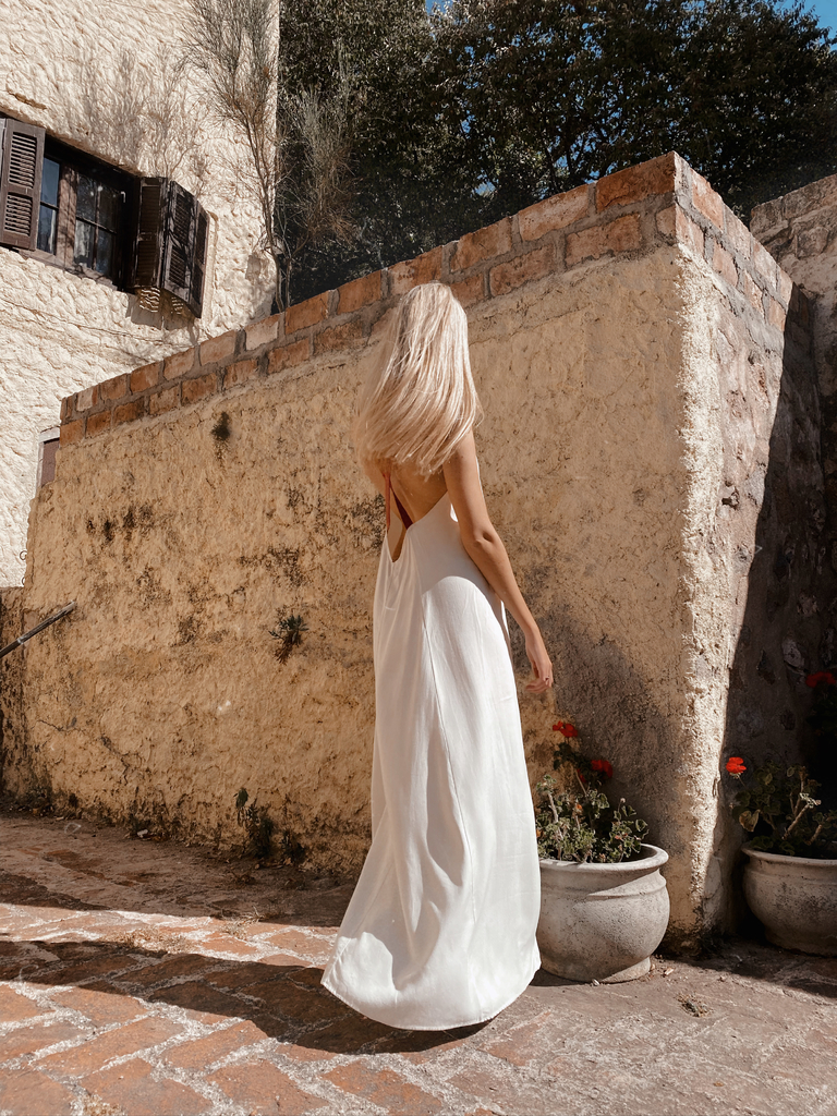 𝐃𝐄𝐓𝐀𝐋𝐋𝐄𝐒 𝐃𝐄 𝐋𝐀 𝐏𝐑𝐄𝐍𝐃𝐀: Vestido largo con breteles de cuero 100% espalda descubierta. Tela Lino Pesado. Es Oversize.